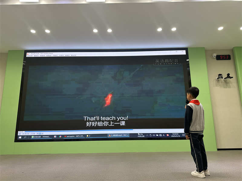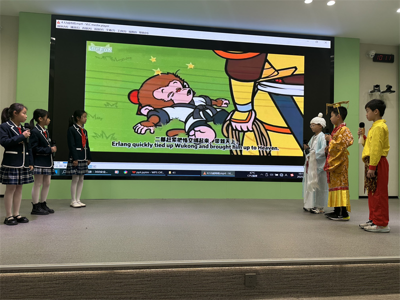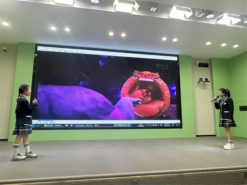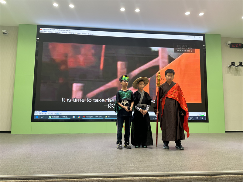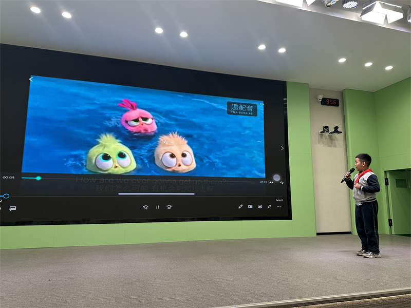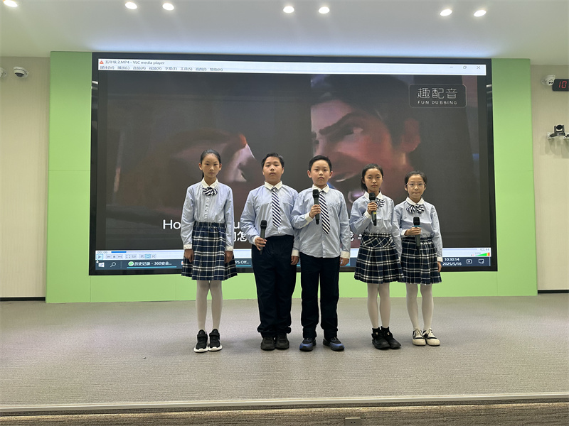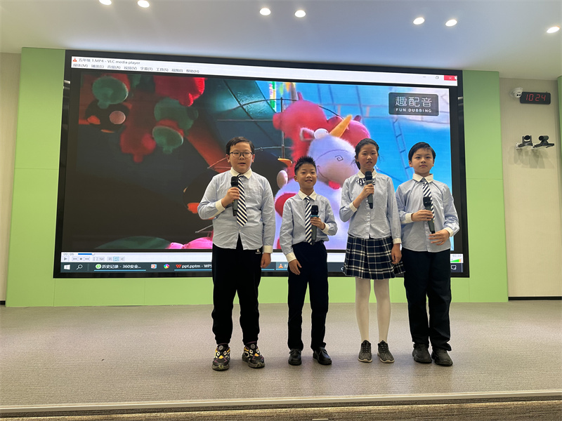 本次大賽分為兩個(gè)環(huán)節(jié):初賽和決賽。學(xué)生們首先通過英語趣配音軟件線上練習(xí),通過這種“人人參與,人人有責(zé)”的活潑有趣的形式使學(xué)生接觸到地道的英語,提高口語表達(dá)能力和表演能力。接著經(jīng)過班級(jí)初賽的激烈角逐,每個(gè)年級(jí)推選出優(yōu)勝者晉級(jí)現(xiàn)場(chǎng)配音秀大賽。