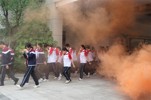 下午4時20分,隨著急促的警報聲劃破校園的寧靜,消防疏散演練正式拉開帷幕。模擬煙霧迅速彌漫,各樓層、各崗位負責老師立即到達指定崗位,沉著冷靜地指揮學生快速、有序撤離。同學們在老師的引導下,嚴格按照應急預案要求,用濕毛巾捂住口鼻,彎腰低姿,沿著預定疏散路線,迅速向學校操場的安全地帶集合。