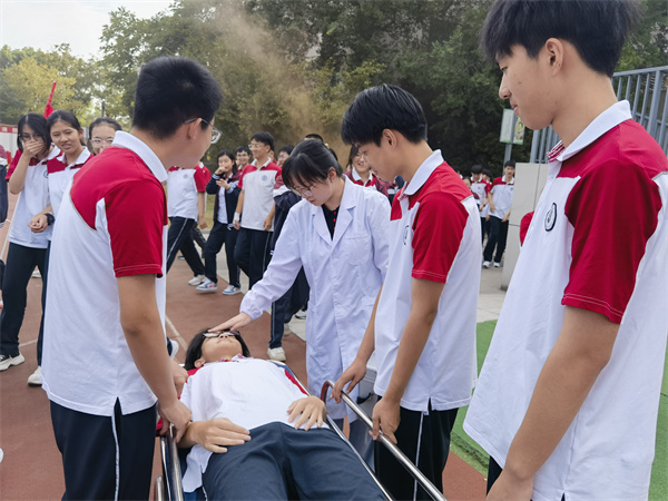 緊急救護組接到校長辦公室通知后到達現場集合待命,準備好救護器材。心理干預組張霄老師對受到驚嚇、產生心理障礙的學生進行心理輔導,救護組及時護扶受傷學生去醫(yī)院。