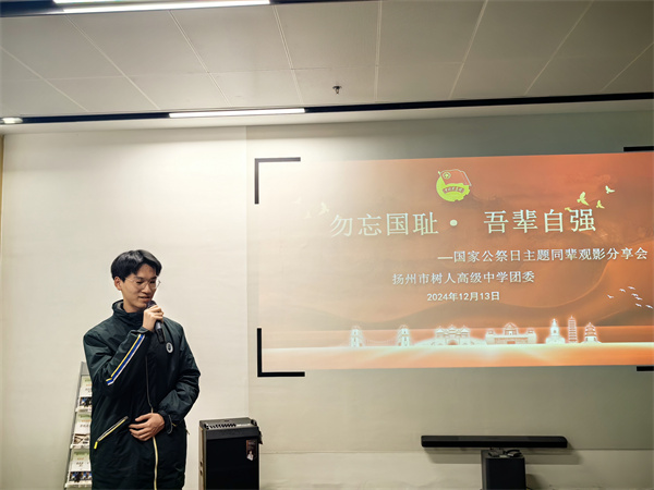 中午12:30,團(tuán)委書記王菁組織全體高二年級(jí)團(tuán)員參加同輩觀影分享會(huì),觀看紅色電影《南京!南京!》。影片中沉重的畫面深深地觸動(dòng)了每一位團(tuán)員的心靈,大家仿佛目睹了慘絕人寰的南京大屠殺。影片播放完后,大家陷入了深深的思考,久久不能平靜。
