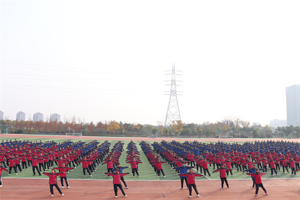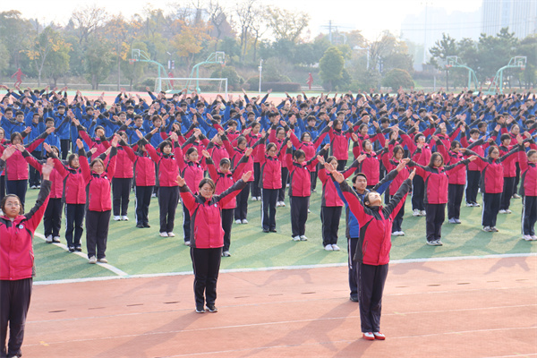 第一項(xiàng)考試內(nèi)容是中學(xué)生第三套廣播操《舞動(dòng)青春》,全體同學(xué)以班級(jí)為單位組成體操隊(duì)形,同學(xué)們個(gè)個(gè)精神抖擻,蓄勢(shì)待發(fā),在口令聲中整齊劃一,動(dòng)作到位有力,向裁判老師展現(xiàn)了樹(shù)高學(xué)子的風(fēng)采。