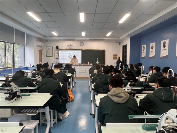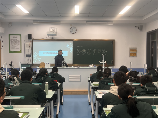 高一生物的拓展活動(dòng)首先讓學(xué)生們集中在生物實(shí)驗(yàn)室,在劉娜老師和劉曉婉老師的指導(dǎo)下,學(xué)習(xí)如何正確使用高倍顯微鏡觀察各種細(xì)胞的裝片,繪制細(xì)胞圖像,提升實(shí)驗(yàn)技能,深刻體會(huì)不同生物細(xì)胞的多樣性。隨后的講座環(huán)節(jié),高雙晨老師以《探索遺傳奧秘:孟德爾遺傳規(guī)律的發(fā)現(xiàn)與應(yīng)用》為主題,介紹了孟德爾的生平和孟德爾定律的探索過程等,讓學(xué)生們對(duì)遺傳學(xué)有了初步的認(rèn)識(shí)。隨后,學(xué)生們分組進(jìn)行了遺傳規(guī)律推導(dǎo)練習(xí),如繪制遺傳圖譜、計(jì)算基因型和表現(xiàn)型比例等。通過小組討論和合作,學(xué)生們不僅加深了對(duì)遺傳學(xué)原理的理解,還鍛煉了團(tuán)隊(duì)合作和解決問題的能力。