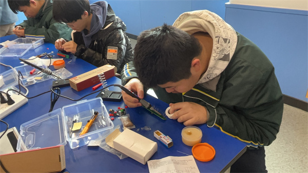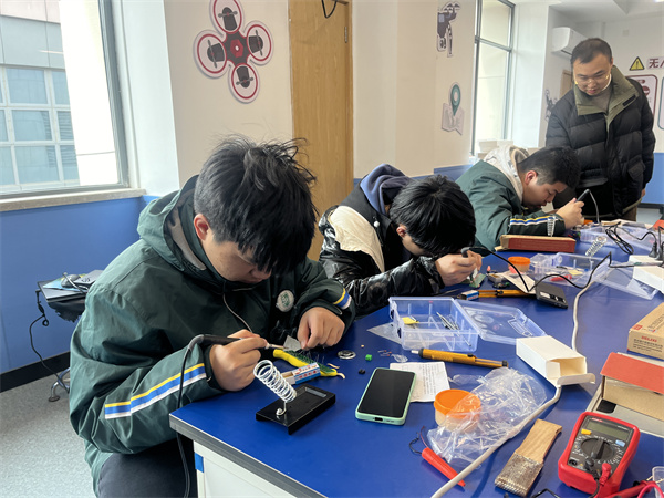 本次智能探索課程以“科技與創(chuàng)新”為主題,學(xué)生們在教師指導(dǎo)下體驗(yàn)電子琴制作和無(wú)人機(jī)飛行,近距離感受到了科技的魅力。在電子琴制作環(huán)節(jié),由專業(yè)教師指導(dǎo),學(xué)生們分組合作,利用電烙鐵、電阻、電容、二極管等電子元器件,親手組裝起了簡(jiǎn)易電子琴。過程中,教師們耐心講解每個(gè)步驟,學(xué)生們則聚精會(huì)神地操作,通過近兩個(gè)小時(shí)的努力,一件件精美的電子琴作品陸續(xù)完成。學(xué)生們興奮地按下琴鍵,聽著自己親手制作的電子琴發(fā)出的悅耳聲音。這一環(huán)節(jié)不僅鍛煉了學(xué)生們的動(dòng)手能力,還讓他們對(duì)電子電路有了更直觀的認(rèn)識(shí)和理解。隨后的無(wú)人機(jī)飛行體驗(yàn)環(huán)節(jié),指導(dǎo)教師操作的無(wú)人機(jī)在空中靈活穿梭,時(shí)而翻滾,時(shí)而俯沖,引來學(xué)生們陣陣驚嘆。演示結(jié)束后,學(xué)生們也迫不及待地試飛,他們小心翼翼地操控著遙控器,看著無(wú)人機(jī)在自己的操控下緩緩升起降落,激動(dòng)與興奮溢于言表。此次活動(dòng)讓學(xué)生們?cè)趯?shí)踐中學(xué)習(xí)、在探索中成長(zhǎng),對(duì)于培養(yǎng)他們的科技創(chuàng)新精神和實(shí)踐能力具有重要意義。