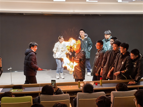 物理組特別邀請(qǐng)揚(yáng)州大學(xué)杜微教授開展“物理學(xué)怎樣改變世界”主題講座。講座中,杜教授以牛頓力學(xué)、麥克斯韋、愛因斯坦三個(gè)階段為脈絡(luò),深入淺出地闡述了物理學(xué)如何重塑世界,還介紹了物理科技在醫(yī)學(xué)領(lǐng)域的助力。隨后,杜微教授與兩名揚(yáng)州大學(xué)學(xué)生帶來光的衍射、流體力學(xué)、全息投影、液體表面張力等精彩實(shí)驗(yàn)展示,直觀呈現(xiàn)物理原理。這些實(shí)驗(yàn)搭建起樹人學(xué)子深入探索物理世界的橋梁,讓學(xué)生們?cè)诶碚撆c實(shí)踐的結(jié)合中,感受物理魅力,激發(fā)對(duì)科學(xué)探索的熱情,為培養(yǎng)學(xué)生跨學(xué)科思維與創(chuàng)新能力奠定堅(jiān)實(shí)基礎(chǔ)。此次活動(dòng)有力推動(dòng)了高中與高校教育資源的深度融合,助力學(xué)生拓寬學(xué)術(shù)視野。