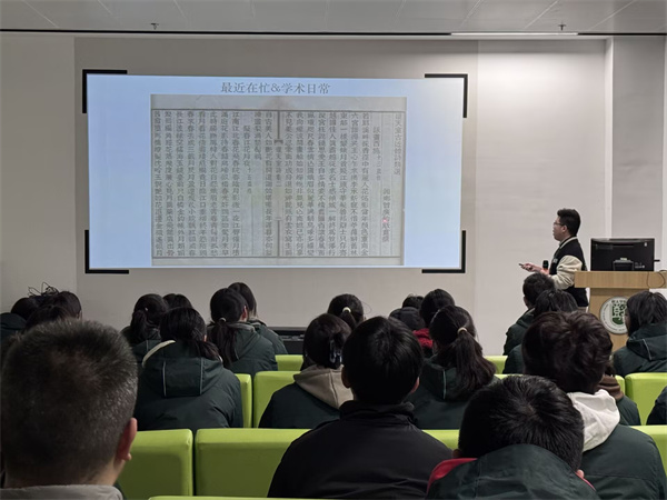 為提高人才培養(yǎng)質(zhì)量,促進(jìn)學(xué)生全面發(fā)展,推動(dòng)教育改革與創(chuàng)新,發(fā)揮語(yǔ)文學(xué)科教育的功能,語(yǔ)文組特舉行了語(yǔ)文整本書閱讀與分享活動(dòng),特別邀請(qǐng)了揚(yáng)州大學(xué)中國(guó)古典文獻(xiàn)學(xué)研究生趙岳慶在圖書館為同學(xué)們分享閱讀經(jīng)驗(yàn)及文學(xué)趣味知識(shí)。
