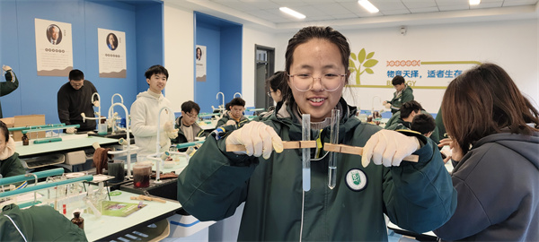 高二化學(xué)則開展了以“鹵代烴的性質(zhì)探究”為主題的知行拓展實(shí)踐活動(dòng)。首先是教師講解引導(dǎo)學(xué)生思考,然后讓學(xué)生自主設(shè)計(jì)實(shí)驗(yàn),完成鹵代烴的水解、消去等反應(yīng),體會(huì)不同實(shí)驗(yàn)裝置不同實(shí)驗(yàn)條件對(duì)實(shí)驗(yàn)結(jié)果的影響。實(shí)驗(yàn)過程中,學(xué)生不僅鞏固了理論知識(shí),還鍛煉了動(dòng)手能力和團(tuán)隊(duì)協(xié)作精神。參與學(xué)生紛紛表示,將非遺技藝轉(zhuǎn)化為化學(xué)實(shí)驗(yàn),既傳承文化又培養(yǎng)創(chuàng)新思維。實(shí)驗(yàn)讓他們對(duì)化學(xué)反應(yīng)有了更直觀的認(rèn)識(shí),也提升了科學(xué)探究能力。此次活動(dòng)是教學(xué)實(shí)踐改革的一次成功嘗試,未來將繼續(xù)開展類似拓展實(shí)踐,助力學(xué)生全面發(fā)展。