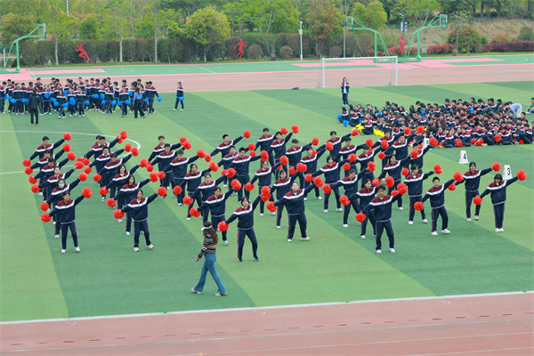 首先,14個班級分為七組,兩兩對決。各班同學身著統(tǒng)一校服,拿著色彩鮮艷的花球,精神抖擻地登場。他們動作整齊劃一,充滿力量與美感,每一次跳躍、每一個轉身都展現(xiàn)出青春的活力與自信。同學們在操場上盡情揮灑汗水,用整齊的動作和燦爛的笑容詮釋著對生活的熱愛,贏得了觀眾陣陣熱烈的掌聲。