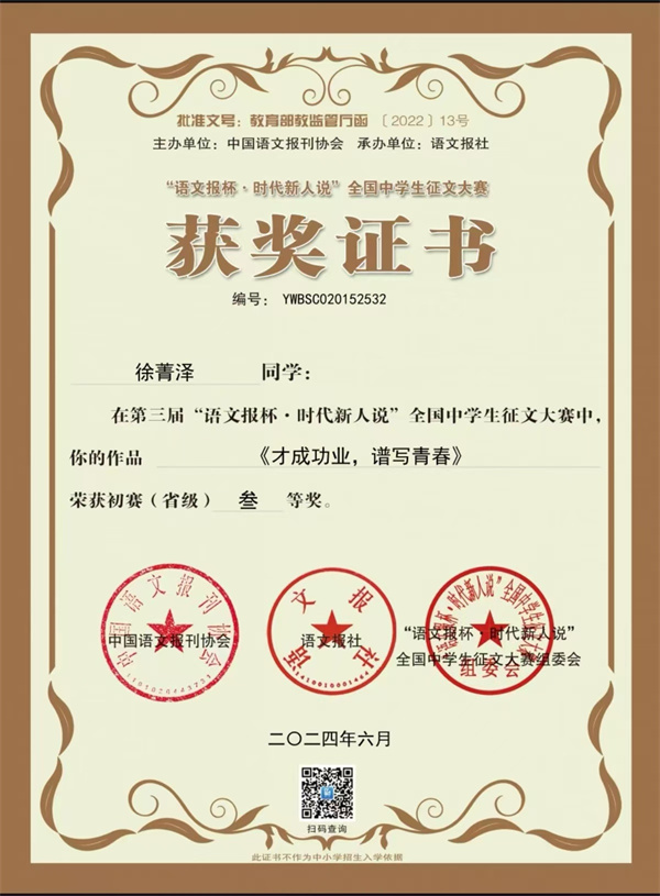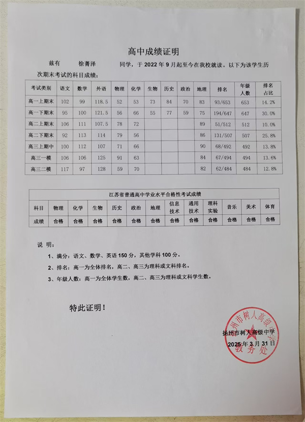 我校2025屆高三(3)班 徐菁澤 同學(xué)擬參加 揚(yáng)州大學(xué) 2025年綜合評(píng)價(jià)招生報(bào)名,現(xiàn)予以公示。公示時(shí)間為 2025年5月7 日至2025年5月9日。有異議者可向?qū)W校教務(wù)處反映,聯(lián)系電話0514-89991060