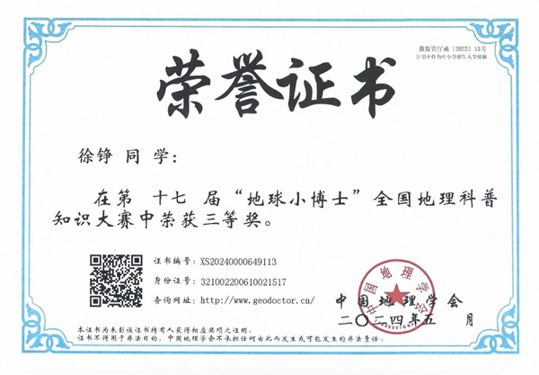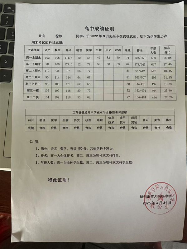 我校2025屆高三(3)班 徐錚 同學(xué)擬參加 揚(yáng)州大學(xué) 2025年綜合評(píng)價(jià)招生報(bào)名,現(xiàn)予以公示。公示時(shí)間為 2025年5月7 日至2025年5月9日。有異議者可向?qū)W校教務(wù)處反映,聯(lián)系電話0514-89991060