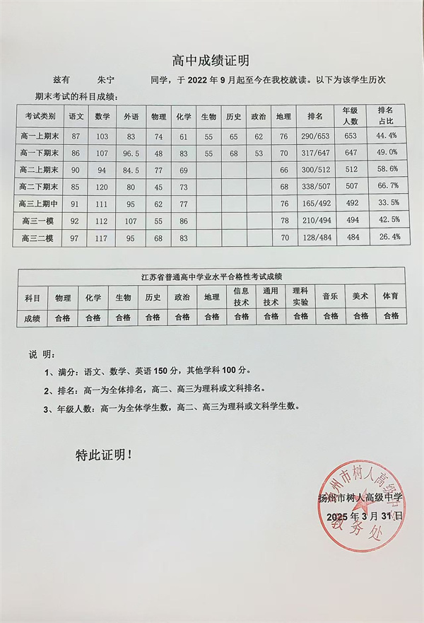 我校2025屆高三( 6)班 朱寧 同學(xué)擬參加 揚州大學(xué) 2025年綜合評價招生報名,現(xiàn)予以公示。公示時間為 5月6 日至5 月9 日。有異議者可向?qū)W校教務(wù)處反映,聯(lián)系電話0514-89991060