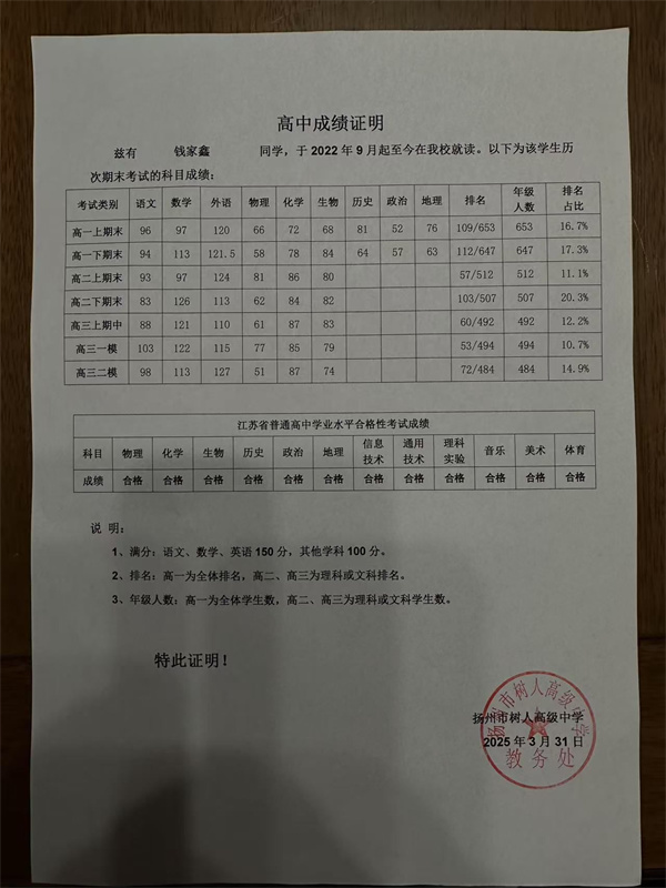 我校2025屆高三(10)班 錢家鑫 同學(xué)擬參加 南京農(nóng)業(yè)大學(xué) 蘇州大學(xué) 南京信息工程大學(xué) 2025年綜合評價招生報名,現(xiàn)予以公示。公示時間為 5月1 日至5月10 日。有異議者可向?qū)W校教務(wù)處反映,聯(lián)系電話0514-89991060