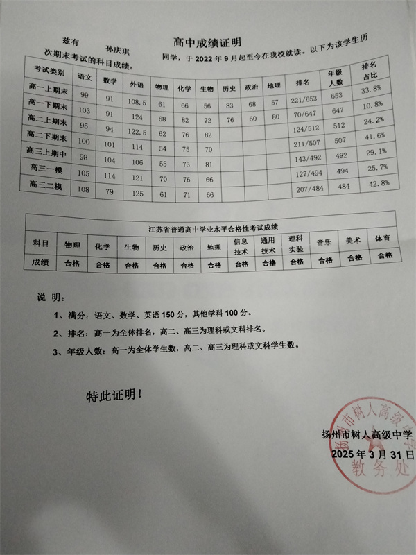 我校2025屆高三(10 )班孫慶琪同學(xué)擬參加 江蘇大學(xué) 南京工程信息大學(xué) 南通大學(xué) 揚(yáng)州大學(xué) 2025年綜合評(píng)價(jià)招生報(bào)名,現(xiàn)予以公示。公示時(shí)間為5月8日至5月10日。有異議者可向?qū)W校教務(wù)處反映,聯(lián)系電話(huà)0514-89991060