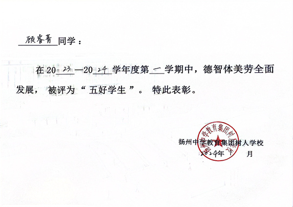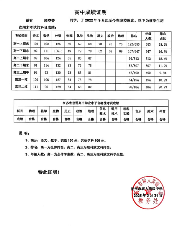 我校2025屆高三(9 )班 顧睿菁 同學(xué)擬參加 揚(yáng)州大學(xué) 2025年綜合評(píng)價(jià)招生報(bào)名,現(xiàn)予以公示。公示時(shí)間為 5月 6 日至5 月 9 日。有異議者可向?qū)W校教務(wù)處反映,聯(lián)系電話0514-89991060。
