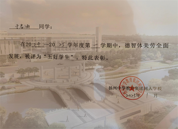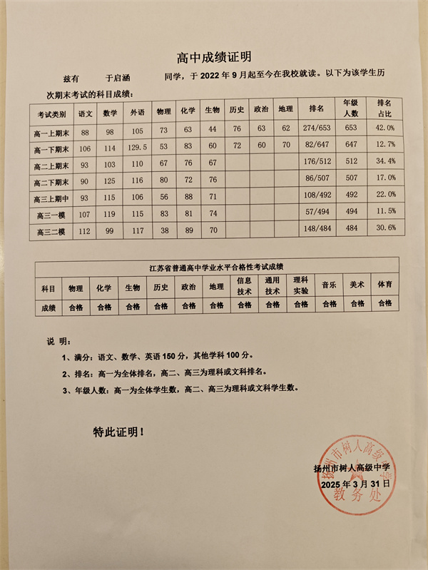 我校 2025 屆高三(9)班 于啟涵 同學擬參加 揚州大學 2025年綜合評價招生報名,現(xiàn)予以公示。公示時間為5月6日至5月9日。有異議者可向學校教務處反映,聯(lián)系電話 0514-89991060。