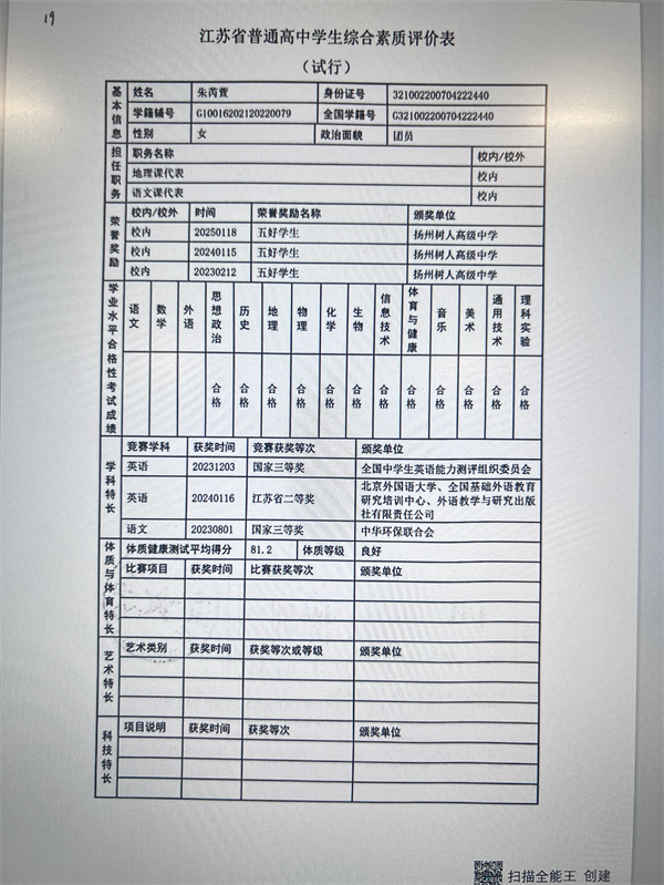 我校2025屆高三(3 )班 朱芮萱 同學(xué)擬參加 南京工業(yè)大學(xué) 2025年綜合評(píng)價(jià)招生報(bào)名,現(xiàn)予以公示。公示時(shí)間為5月6日至5月9日。有異議者可向?qū)W校教務(wù)處反映,聯(lián)系電話0514-89991060