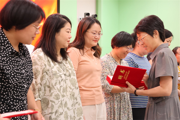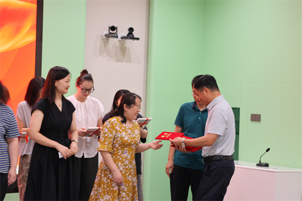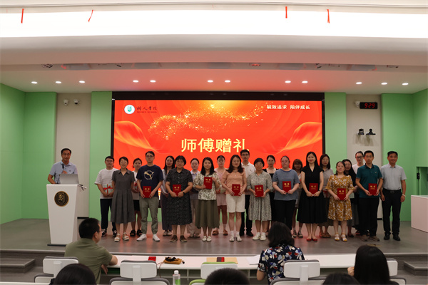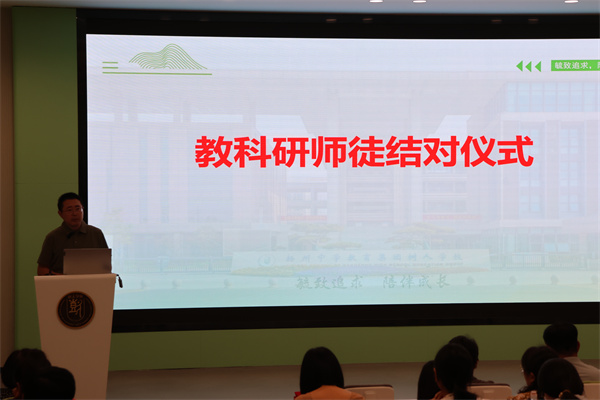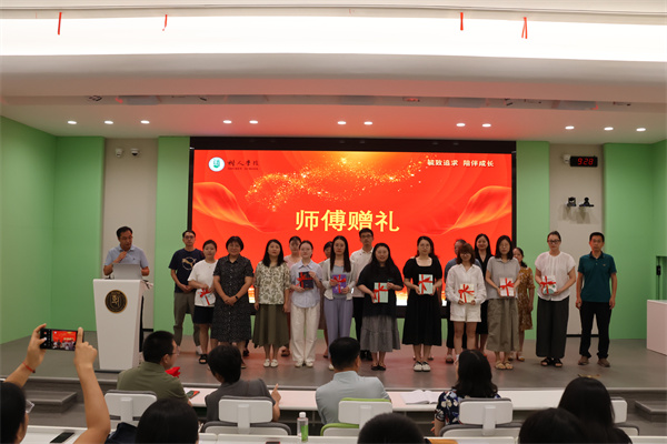 活動的第六項(xiàng)議程,新學(xué)期師徒結(jié)對儀式。學(xué)校一貫重視教師隊(duì)伍建設(shè)和青年教師培養(yǎng),活動中,樹人學(xué)校校長趙濤,鳳棲湖校區(qū)校長張鵬分別為校級師徒結(jié)對代表頒發(fā)了聘書。
