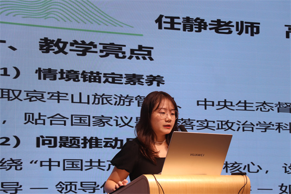 教研活動的第一項(xiàng)議程,基于“情境·問題導(dǎo)學(xué)”教學(xué)范式的說課評課。語文組潘佳老師、數(shù)學(xué)組秦詠梅老師、化學(xué)組王飛老師、生物組劉娜老師、政治組王婷婷老師就開學(xué)視導(dǎo)推門聽課評價(jià)進(jìn)行交流發(fā)言。潘佳老師認(rèn)為情境需增加“沖突性”,推動深度思考。秦詠梅老師認(rèn)為要優(yōu)化問題鏈設(shè)計(jì),深化思維層次。王飛老師認(rèn)為我們需要深化原理本質(zhì),突破認(rèn)知難點(diǎn)。劉娜老師認(rèn)為應(yīng)該豐富評價(jià)方式,實(shí)現(xiàn)精準(zhǔn)教學(xué)。王婷婷老師則指出增設(shè)學(xué)生互動環(huán)節(jié)、設(shè)計(jì)跨模塊關(guān)聯(lián)問題的重要性。