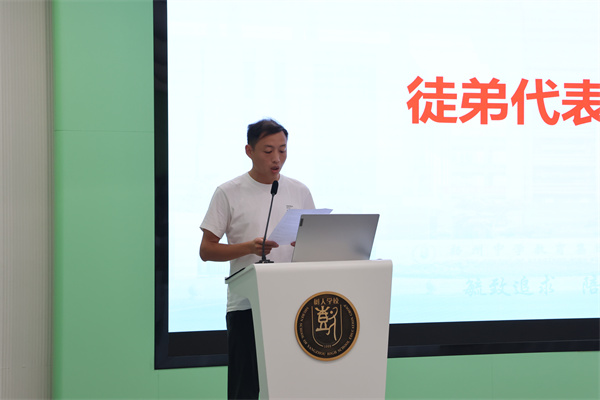 儀式結(jié)束后,教科研徒弟代表李冬冬、班主任師父代表李巧巧分別作表態(tài)發(fā)言。李冬冬老師分享了一年來他在師傅的引領(lǐng)與幫助下的成長點(diǎn)滴,未來將繼續(xù)以師傅為榜樣,努力成長為一名優(yōu)秀教師。李巧巧老師表示,努力做好徒弟成長發(fā)展的引路人,傾囊相授助力徒弟們快速成長,同時(shí)也以徒為鏡,主動學(xué)習(xí)徒弟們的優(yōu)點(diǎn),實(shí)現(xiàn)教學(xué)相長。
