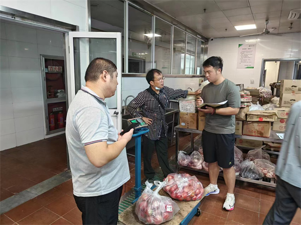 清晨5:30,天剛蒙蒙亮,樹人學(xué)校食堂內(nèi)已是一片忙碌而有序的景象。家長(zhǎng)志愿者在食堂管理員的引導(dǎo)下,對(duì)剛剛送達(dá)的蔬菜、肉類等食材進(jìn)行了細(xì)致地檢查。他們仔細(xì)查看食材的外觀、色澤,詢問供應(yīng)商信息,并親身體驗(yàn)食材的觸感,家長(zhǎng)志愿者和食堂管理者一起對(duì)食材進(jìn)行檢查、稱重、記錄,確保每一份食材都符合安全標(biāo)準(zhǔn)。同時(shí),驗(yàn)菜過程全程錄像,增加透明度,便于后續(xù)追溯。