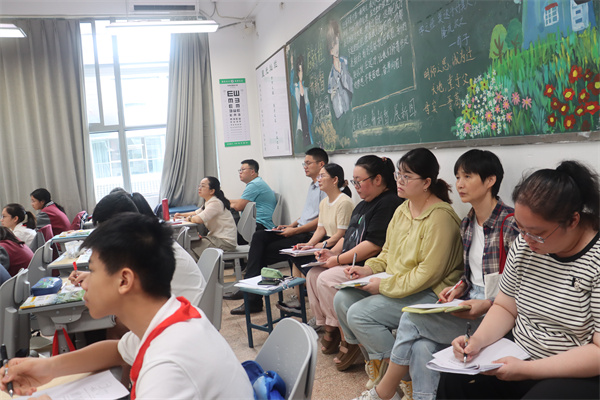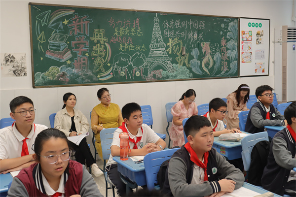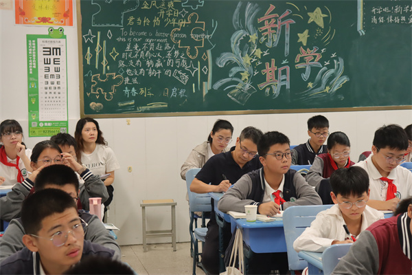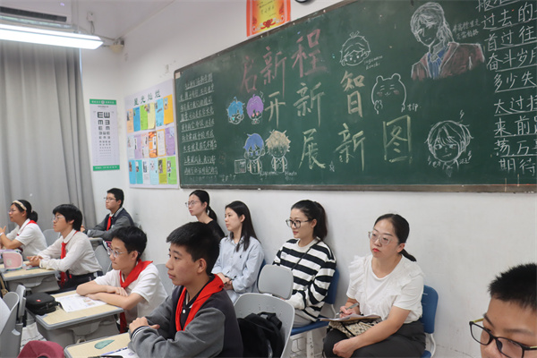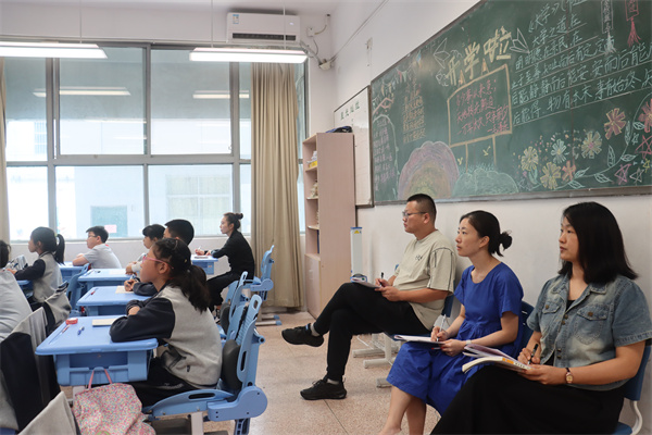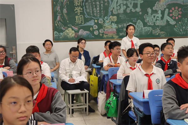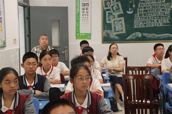 下午來賓們分學(xué)科走進(jìn)教室聽課,語文王婭娜、數(shù)學(xué)葉娟、道德與法治李芳、物理曹健、小學(xué)數(shù)學(xué)瞿姍姍、體育劉亞幾位老師開設(shè)了觀摩課。正值初一年級大合唱比賽舉行,考察團(tuán)一行饒有興致地參加了觀摩活動。