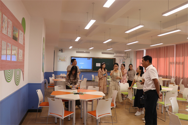 8位新疆老師分別走進(jìn)課堂,涉及語文、數(shù)學(xué)、英語、物理、體育等學(xué)科,觀摩我校的學(xué)科教學(xué),初二年級主任武飛、學(xué)科備課主任陪同聽課。課后,來賓們和我校老師進(jìn)行了深入的交流,分享了學(xué)習(xí)心得。在咖啡廳,來賓們與九龍湖校區(qū)校長辦公室、教務(wù)處、學(xué)工處、總務(wù)處等部門負(fù)責(zé)人展開交流,就教育教學(xué)、德育活動、學(xué)生發(fā)展、教師成長等進(jìn)行詳細(xì)溝通。在四樓會議室,來訪團(tuán)參加了班主任例會,圍繞班級管理、教育教學(xué)、潤心賦能等工作展開交流。