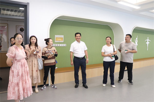 26日上午,考察團(tuán)在該校工會主席孫美娟帶領(lǐng)下來到南門街校區(qū),校區(qū)校長姜亞芹、副校長童敏娟熱情接待。來賓們首先在南門街校辦主任韓愛祥的帶領(lǐng)下參觀了校園。從教學(xué)樓一樓大廳學(xué)生實(shí)踐作業(yè)展,到二樓藝術(shù)報告廳、三樓閱讀長廊、四樓科技長廊,再到學(xué)校英特展示區(qū)、宣傳欄,來賓們駐足觀看,拍照,留下了深刻的印象。接著,考察團(tuán)一行參加了南門街校區(qū)行政辦公會。