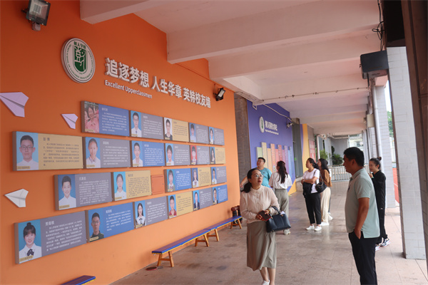 來賓們走進(jìn)景色宜人、環(huán)境優(yōu)雅、布局有致、設(shè)施先進(jìn)的鳳棲湖校園。先后參觀了《樹人賦》、校友長廊、省語文閱讀課程基地、夢想劇場、省基于融合的地理課程基地、“尚美”藝術(shù)課程基地、心理咨詢室和潤心廣場。參觀過程中,我們向來賓詳細(xì)介紹了學(xué)校特色活動以及相關(guān)校本課程與社團(tuán)活動的開展情況。大家紛紛表示校園建設(shè)既有文化特色,又不乏時代氣息,處處彰顯學(xué)校特色。