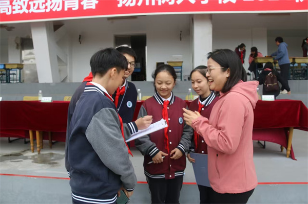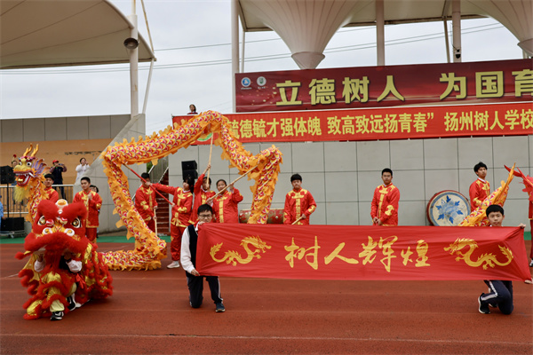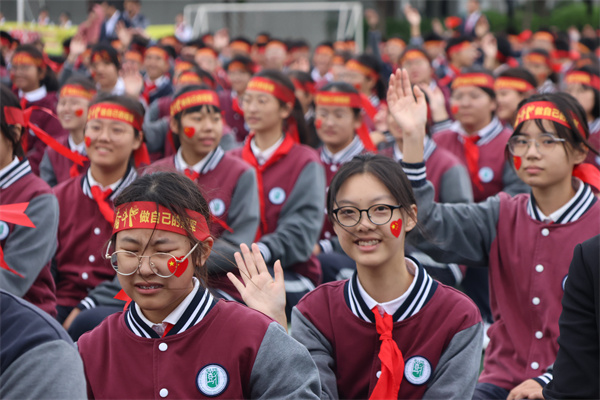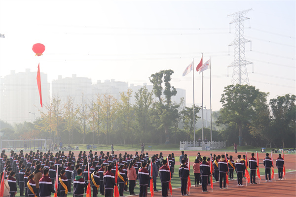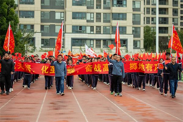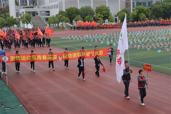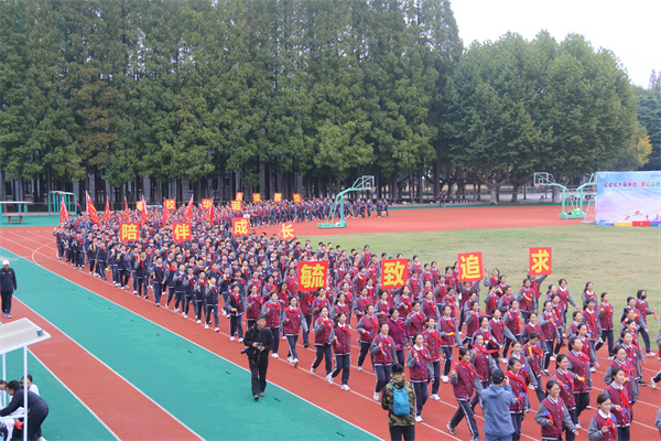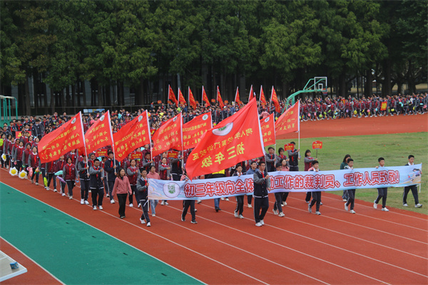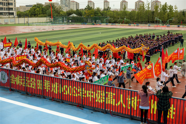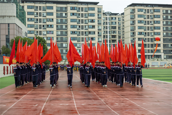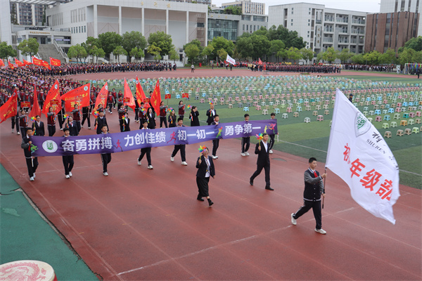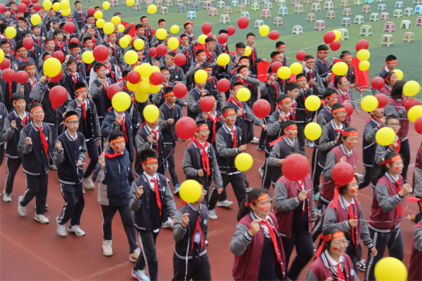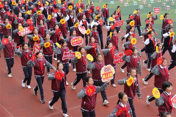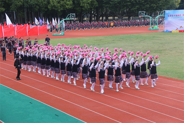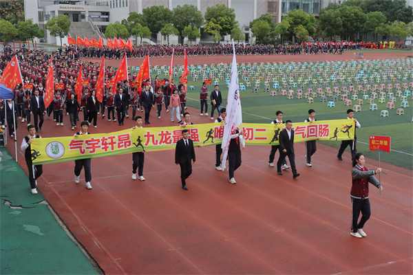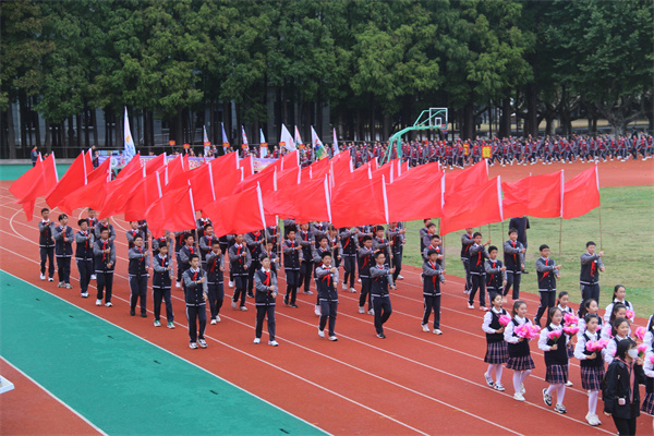 伴著講解員充滿激情的解說,由國旗隊、校旗隊、會徽、標(biāo)語、鮮花隊、紅旗隊以及各年級學(xué)生組成的方陣,依次列隊入場。同學(xué)們意氣風(fēng)發(fā),激情飛揚(yáng),腳步堅定,口號響亮,展示出樹人學(xué)子昂揚(yáng)奮進(jìn)的風(fēng)采。同學(xué)們帶來的入場表演更是青春洋溢,活力四射。操場上掌聲雷動,歡呼雀躍。