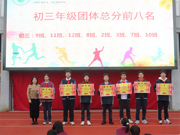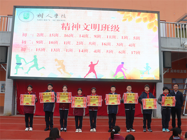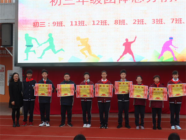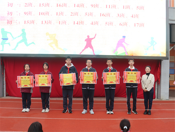 經(jīng)過了一天的比賽與角逐,各校區(qū)宣布了本次運(yùn)動會的比賽成績和精神文明班級評比的結(jié)果,并為獲獎班級頒獎。操場上爆發(fā)出陣陣掌聲,向獲獎班級表示熱烈的祝賀。