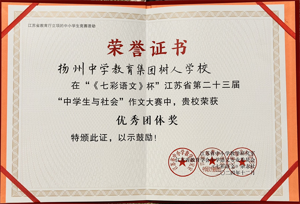 2024年12月15日上午,從南京金陵中學(xué)河西分?!啊镀卟收Z文》杯”江蘇省第二十三屆“中學(xué)生與社會”作文大賽決賽頒獎儀式上傳來佳音,我校參賽選手在這項(xiàng)一年一度的全省中學(xué)生頂級作文賽事中,再次收獲佳績。葛寅清獲得省特等獎,嚴(yán)丹硯、尹雅菁獲得省一等獎。朱坤、唐毅晨、周宥彤、陳思晏、范姜楠、顧苡菡、劉可芯等獲得省二等獎。同時(shí),我校再度榮獲江蘇省中小學(xué)教研室、省中語會、《七彩語文》雜志社三家授牌的“七彩語文”杯江蘇省第二十三屆“中學(xué)生與社會”作文大賽優(yōu)秀團(tuán)體獎。