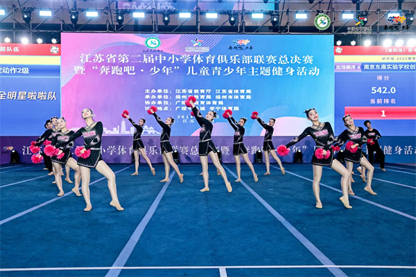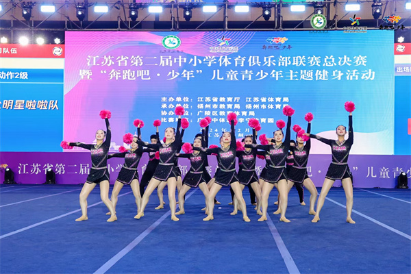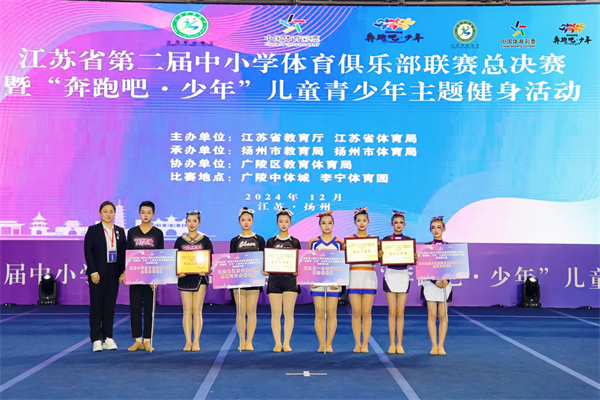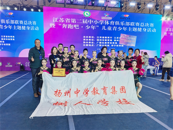 我校全明星啦啦操隊(duì)在12月21日剛剛結(jié)束的2024年江蘇省第二屆中小學(xué)體育俱樂(lè)部聯(lián)賽總決賽中榮獲初中自選第四名、規(guī)定第六名、團(tuán)體二等獎(jiǎng)的好成績(jī),特此祝賀!