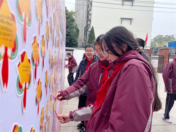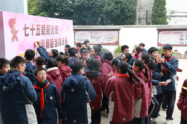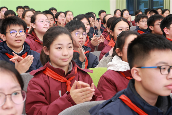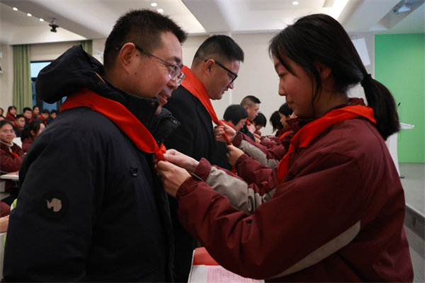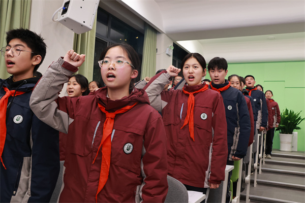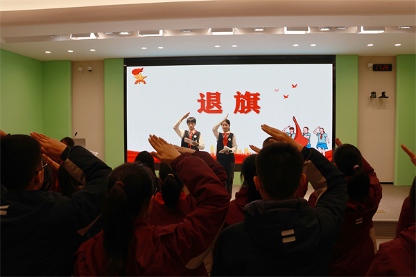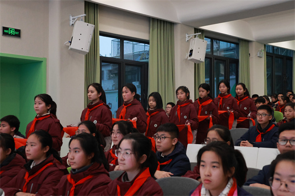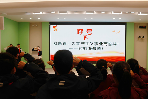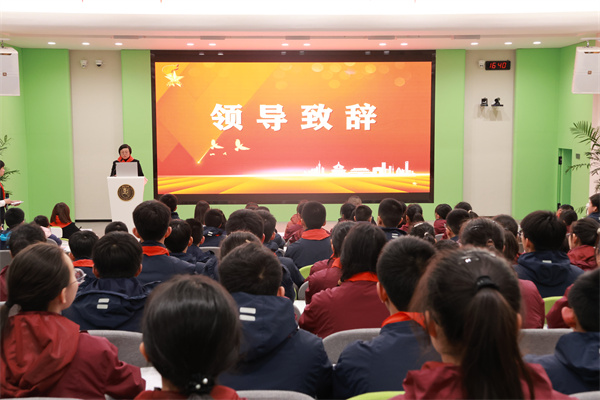 有一抹紅色,永遠(yuǎn)鮮艷,那就是飄揚(yáng)的紅領(lǐng)巾。有一種聲音,永遠(yuǎn)激昂,那就是赤誠鏗鏘的青春誓言。團(tuán)委副書記兼大隊(duì)輔導(dǎo)員李文慧老師帶領(lǐng)全體隊(duì)員,以高昂的嗓音喊出屬于新時(shí)代隊(duì)員們的青春宣誓。鮮紅的領(lǐng)巾,映照著孩子們幸福的臉龐;激揚(yáng)的旋律,鼓勵(lì)著少先隊(duì)員們奮勇前進(jìn)。在李文慧老師的帶領(lǐng)下,全體少先隊(duì)員右手握拳:“時(shí)刻準(zhǔn)備著!”,響亮的呼號聲載著夢想,響徹校園,表達(dá)了少先隊(duì)員永遠(yuǎn)聽黨話、跟黨走的堅(jiān)定信心,他們正用自己的行動(dòng)賡續(xù)紅色血脈,爭做新時(shí)代好少年。在全體師生的校歌聲中,大會(huì)圓滿閉幕。