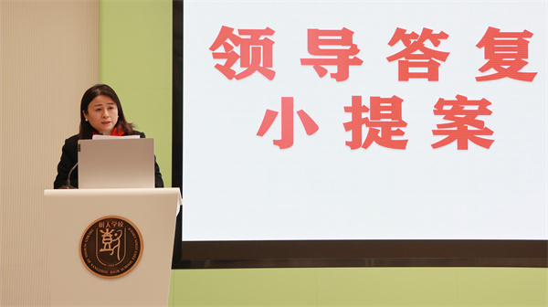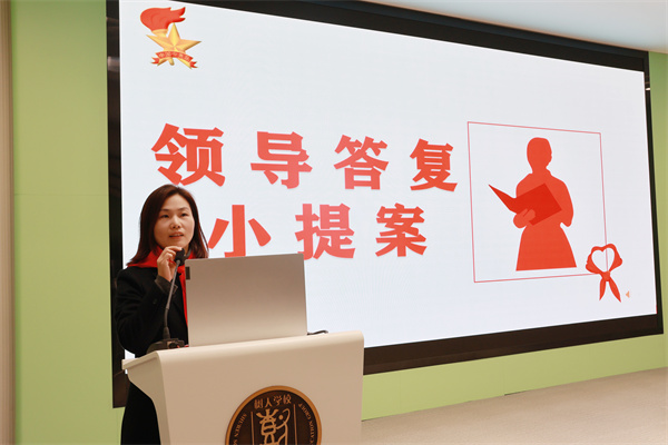 光明為夢想,熱情致青春。本次大會(huì)籌備階段,隊(duì)員代表們充分行使自己的民主權(quán)利,深入校園,傾聽伙伴心聲,對校園建設(shè)管理、隊(duì)員身心健康成長等問題進(jìn)行思考。本次少代會(huì)籌委會(huì)一共收到小提案116份,經(jīng)過層層商討,推薦12份為優(yōu)秀提案,10分最佳提案。針對最佳紅領(lǐng)巾小提案,小學(xué)部主任鄭金平、九龍湖校區(qū)校長殷翠云、南門街校區(qū)校長姜亞芹先后對提案進(jìn)行了答復(fù)。她們表示:學(xué)校會(huì)努力將隊(duì)員們的期盼落到實(shí)處,并號召大家充分發(fā)揮小主人翁的精神,為各項(xiàng)工作的落實(shí)出謀劃策。