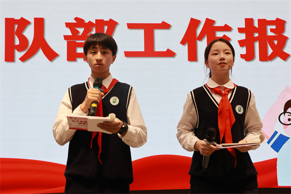 樹人學(xué)校南門街校區(qū)2023級大隊(duì)長蘇研代表學(xué)校少先大隊(duì)部宣讀2023-2024學(xué)年工作報(bào)告并請全體隊(duì)員審議。報(bào)告對學(xué)校少先隊(duì)組織的各項(xiàng)活動(dòng)做了全面的回顧和總結(jié),充分展現(xiàn)了我校少先隊(duì)員自強(qiáng)自主、積極進(jìn)取、勇于創(chuàng)新、勤奮好學(xué)、健康向上的精神風(fēng)貌。
