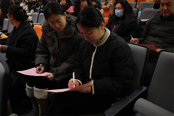 最后,進(jìn)行了民主測(cè)評(píng)投票。每位教職員工認(rèn)真填寫(xiě),慎重地投上神圣的一票。