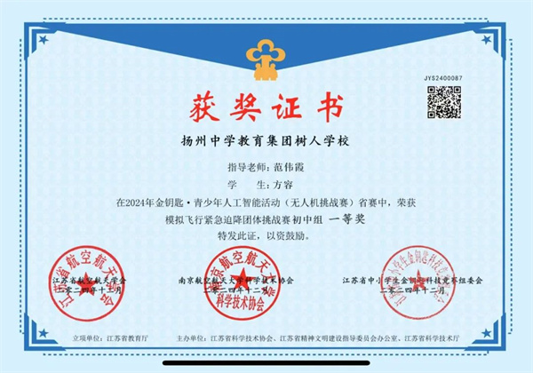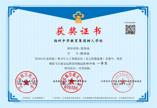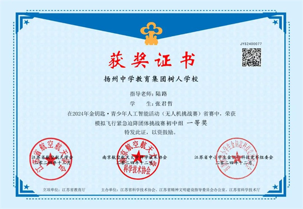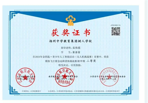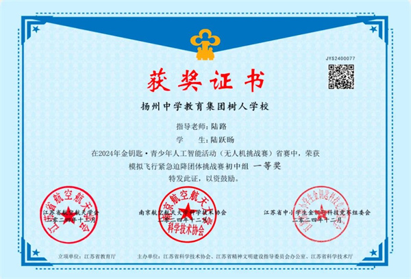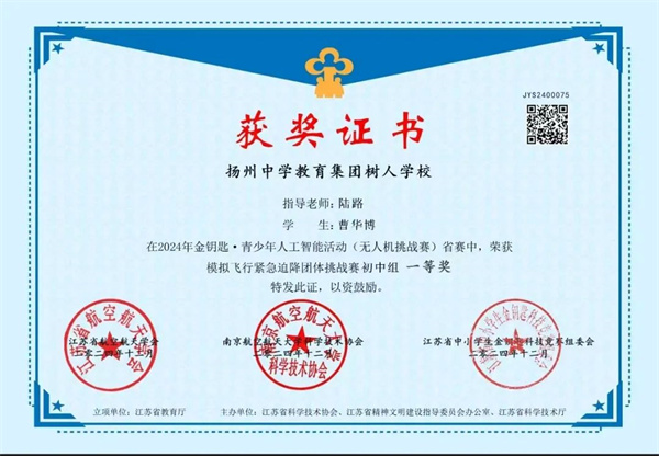 近日,在36屆江蘇省中小學(xué)生金鑰匙科技競賽暨江蘇省青少年人工智能活動無人機挑戰(zhàn)賽中,我校航空科技賽隊的8名學(xué)子憑借扎實的理論功底和精湛的操作技能,在此次競賽中表現(xiàn)尤為突出。其中,6位同學(xué)斬獲一等獎,2位同學(xué)榮獲二等獎!