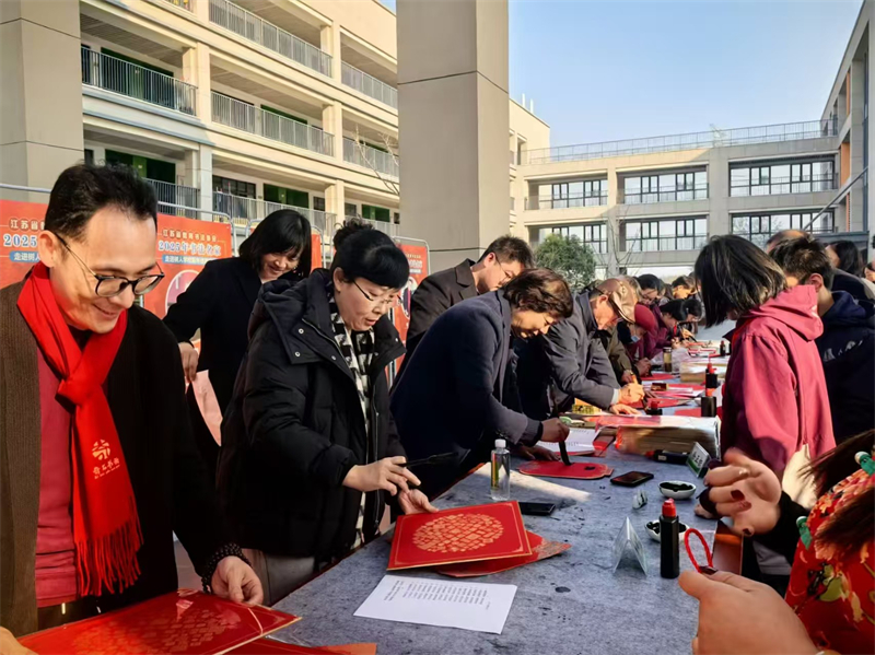 1月19日下午,樹人學(xué)校鳳棲湖校區(qū)年味滿滿,江蘇省教育書法協(xié)會主辦的 “2025年書法名家走進(jìn)樹人學(xué)校新年送?;顒印?盛大開場。夏成滿、吳勇、荀海、徐正標(biāo)、李新翔、林海珊、許磊等多位書法界知名人士親臨現(xiàn)場,以筆墨傳情,為辛勤耕耘在教育一線的樹人學(xué)校教師們送上新春的美好祝福。樹人學(xué)校黨委書記、校長唐煒對書法家們的到來表示熱烈歡迎,同時對書法家們送“?!薄⑺臀幕M(jìn)樹人表示衷心的感謝。