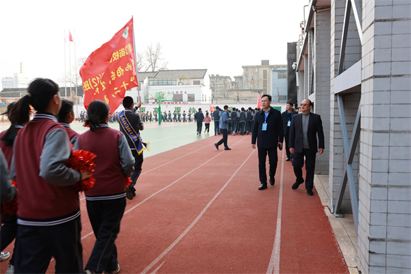 下午三時(shí),領(lǐng)導(dǎo)嘉賓來(lái)到南門(mén)街校區(qū),依次參觀我校學(xué)生課間15分鐘以及大課間30分鐘的活動(dòng)情況。