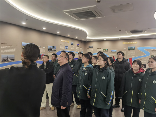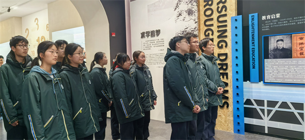 在紀(jì)念館講解員的引導(dǎo)下,師生們依次參觀了“求學(xué)追夢(mèng)”“科技報(bào)國”“教育科普”“情系祖國”四大主題展區(qū)。展廳內(nèi),茅以升先生學(xué)生時(shí)期滿分的成績單、錢塘江大橋的設(shè)計(jì)手稿、炸橋復(fù)橋的歷史影像等珍貴展品,生動(dòng)展現(xiàn)了先生從立志建橋到科學(xué)報(bào)國的傳奇人生。師生們駐足于“科技報(bào)國”展區(qū)時(shí),唐煒校長特別勉勵(lì)學(xué)生們要學(xué)習(xí)茅以升拳拳愛國之情,刻苦勤奮讀書,立志報(bào)效國家。