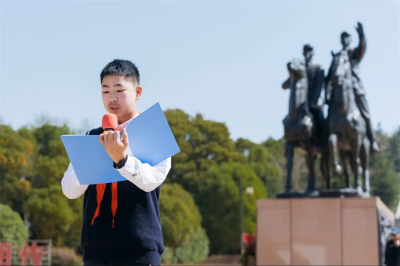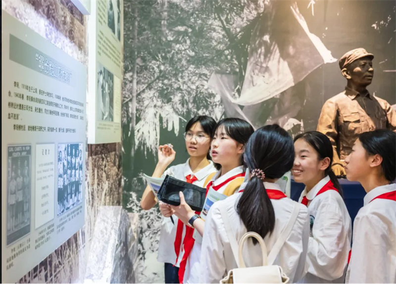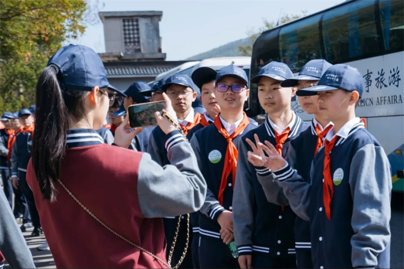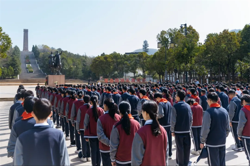 當《新四軍軍歌》旋律在返程大巴上響起,少年們的合唱驚起松間棲鳥,朝著紀念館方向振翅。這座承載著“鐵的信仰、鐵的紀律”精神豐碑的山巒,正將紅色基因化作春風,融入新一代的凝望與步履之中?。