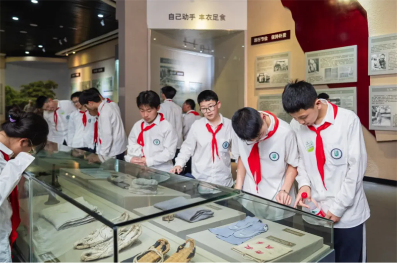 紀念館內,銹跡斑斑的軍號、泛黃的老照片及“軍民魚水情”蠟像場景,生動還原新四軍在茅山創(chuàng)建抗日根據地、依靠群眾開展游擊戰(zhàn)爭的歷程?。學生們手持“時空檔案卡”記錄關鍵歷史事件,在陳毅《新四軍軍歌》手稿展柜前駐足良久。展區(qū)特別還原了戰(zhàn)士們露宿村民屋檐下的場景,呼應“不擾民”的鐵軍紀律傳統?。