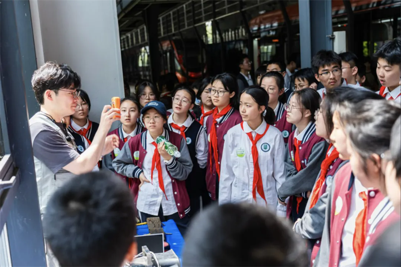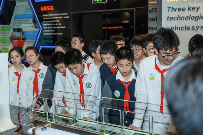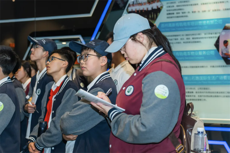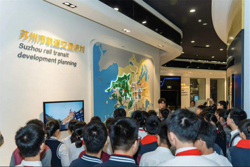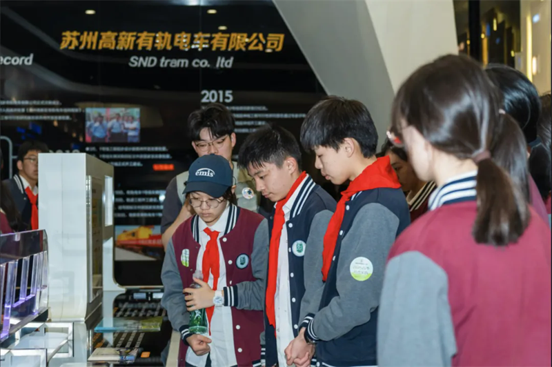 細(xì)致講解啟迪創(chuàng)新思維。在基地工作人員的帶領(lǐng)下,同學(xué)們首先參觀了有軌電車展示廳。從“世界上的有軌電車”的發(fā)展到“中國有軌電車的發(fā)展情況”;從“為什么選擇現(xiàn)代有軌電車”到蘇州有軌電車的分布;從“蘇州市軌道交通規(guī)劃”到蘇州高新有軌電車建設(shè)實(shí)錄,一直到蘇州市現(xiàn)代有軌電車的發(fā)展愿景。工作人員細(xì)致的講解啟迪了同學(xué)們的創(chuàng)新思維?;毓ぷ魅藛T特別強(qiáng)調(diào)了科技創(chuàng)新在綠色交通中的重要作用。同學(xué)們還踴躍提問,"有軌電車如何實(shí)現(xiàn)節(jié)能環(huán)保""未來會不會實(shí)現(xiàn)全自動駕駛"等問題得到了工作人員的耐心解答。