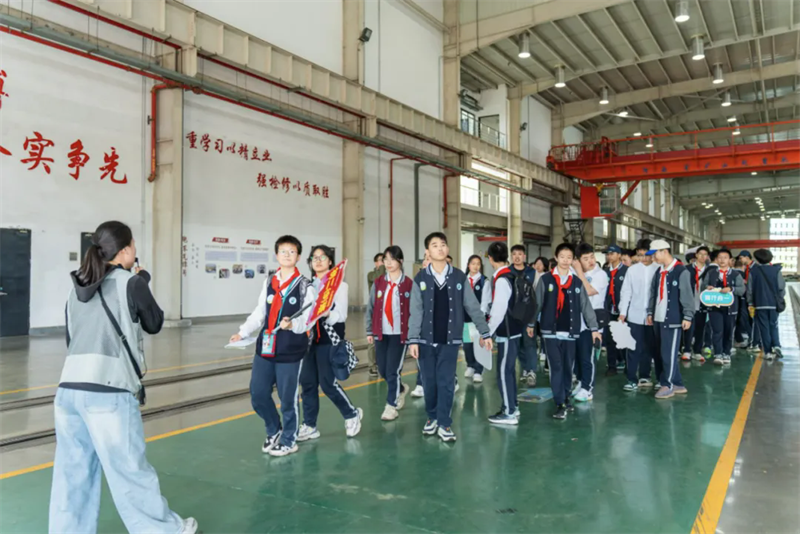 探秘智能交通 感受科技魅力?;毓ぷ魅藛T又帶領(lǐng)同學(xué)們沿著綠色通道,走進(jìn)車間參觀。相關(guān)人員講解了有軌電車的工作原理,向同學(xué)們展示了現(xiàn)代化的有軌電車。同學(xué)們不由驚嘆道:"原來有軌電車內(nèi)部結(jié)構(gòu)這么復(fù)雜!"在調(diào)度控制中心,巨大的電子屏幕上實(shí)時(shí)顯示著各條線路的運(yùn)行狀況,讓同學(xué)們直觀了解了智能調(diào)度系統(tǒng)的工作原理。同學(xué)們還懷著激動的心情,在車間合影留念。
