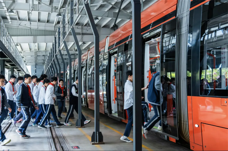 最讓同學(xué)們興奮的是模擬乘車和實(shí)地乘車體驗(yàn)環(huán)節(jié)。每位同學(xué)都有機(jī)會坐上現(xiàn)代化的有軌電車。"有軌電車比一般的公交車快多了。坐在有軌電車?yán)铮杏X很平穩(wěn)、很安全,沿途風(fēng)景也清新怡人。這讓我深刻體會到軌道交通的安全性和嚴(yán)謹(jǐn)性。"有的同學(xué)在體驗(yàn)后這樣說道。