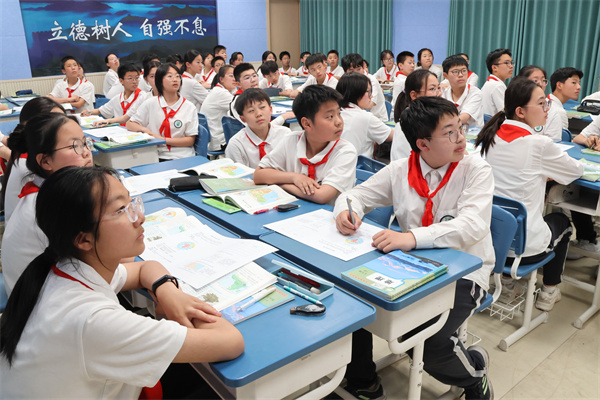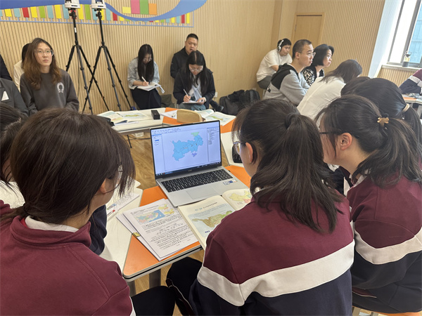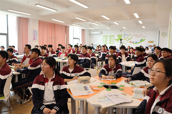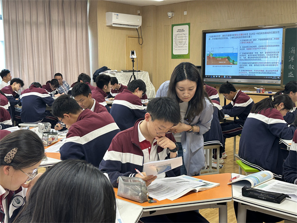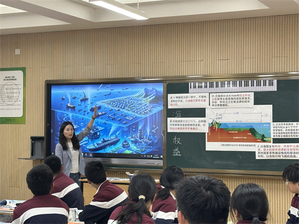 下午第二節(jié)課,來自蘇州實(shí)驗(yàn)中學(xué)的汪洋老師開設(shè)了《向海圖強(qiáng):共筑藍(lán)色疆域——海洋權(quán)益》示范課。在本節(jié)課的第一篇章:走向海洋——海權(quán)之問中,高一6班的同學(xué)們根據(jù)預(yù)習(xí)內(nèi)容,通過繪圖貼圖的形式將各類海域及其相應(yīng)權(quán)益一一明確,在動(dòng)手操作中落實(shí)區(qū)域認(rèn)知;在第二篇章共筑疆域——疆域?qū)嵶C中,同學(xué)們?cè)谕衾蠋煹闹笇?dǎo)下繪制海域范圍,深入思考東海大陸架劃界的科學(xué)依據(jù),感受科學(xué)家們?yōu)樽鎳?guó)領(lǐng)土主權(quán)完整所作出的巨大貢獻(xiàn);在第三篇章向海圖強(qiáng)——筑夢(mèng)深藍(lán)中,汪老師和同學(xué)們共同構(gòu)建東海海疆的發(fā)展藍(lán)圖,民族自豪感和使命感油然而生,地理學(xué)科的育人價(jià)值得以體現(xiàn)。