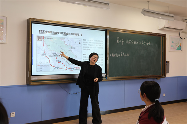 高二分會(huì)場(chǎng)2的下午第一節(jié)課由來自江蘇省南通田家炳中學(xué)的張?jiān)评蠋熢诟叨?/span>11班開設(shè)了《自然保護(hù)區(qū)與生態(tài)安全》,以三江源國(guó)家公園重點(diǎn)保護(hù)動(dòng)物雪豹為情境貫穿教學(xué)始終,以層層遞進(jìn)的問題鏈引導(dǎo)學(xué)生探究三江源地區(qū)為什么成為雪豹生存秘境,雪豹為什么是三江源生態(tài)系統(tǒng)的晴雨表,以及三江源生態(tài)變化對(duì)雪豹的生存是福是禍。教學(xué)過程中極大地啟發(fā)了學(xué)生的思維,滲透著地理學(xué)思想,同時(shí)能將核心概念進(jìn)行整合,將碎片化的知識(shí)形成網(wǎng)絡(luò),教學(xué)目標(biāo)達(dá)成度很高。