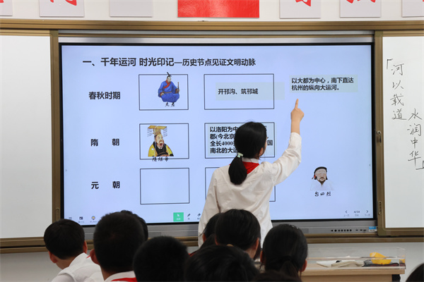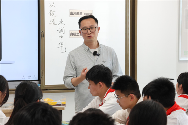 跨學(xué)科學(xué)習(xí)會(huì)場(chǎng)中,第一節(jié)課由來自常州市正衡中學(xué)的吳琦老師帶來了一節(jié)《“河”以載道,水潤(rùn)中華》的研究課,課堂圍繞中國(guó)大運(yùn)河進(jìn)行了深刻探索,巧妙地融合了地理、歷史和物理學(xué)科。以重要?dú)v史節(jié)點(diǎn)探討了開鑿大運(yùn)河的歷史必然性,通過地理、氣候、河流等地理要素展現(xiàn)了大運(yùn)河開鑿的有利方面,結(jié)合物理力學(xué)實(shí)驗(yàn)明確了水運(yùn)的優(yōu)勢(shì),最后以城市為載體,展現(xiàn)了河流對(duì)文明的延續(xù)。