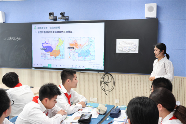 會(huì)場(chǎng)二的第一節(jié)課由儀征市大儀初級(jí)中學(xué)的武雨凡老師開設(shè),以撒哈拉以南非洲的經(jīng)濟(jì)為主線,以“富饒的證據(jù)”和“貧窮的現(xiàn)實(shí)”之間的對(duì)比,帶領(lǐng)學(xué)生認(rèn)識(shí)了非洲的地理位置、自然環(huán)境特征、農(nóng)業(yè)等,結(jié)合時(shí)政“中國(guó)援建非洲”,體現(xiàn)了大國(guó)智慧。 第二節(jié)課是由淮陰中學(xué)開明分校的高凌宇老師帶來的《高原濕地——三江源地區(qū)》,“遷出新天地,守護(hù)生命線”,課程利用了AI、3D打印技術(shù)等手段,從生態(tài)移民村看三江源地區(qū)的可持續(xù)發(fā)展。介紹了三江源地區(qū)的地理位置、生態(tài)環(huán)境的重要性,以及生態(tài)環(huán)境出現(xiàn)的問題、原因、影響、解決措施等,突出體現(xiàn)了人地協(xié)調(diào)、因地制宜,遵循自然環(huán)境。