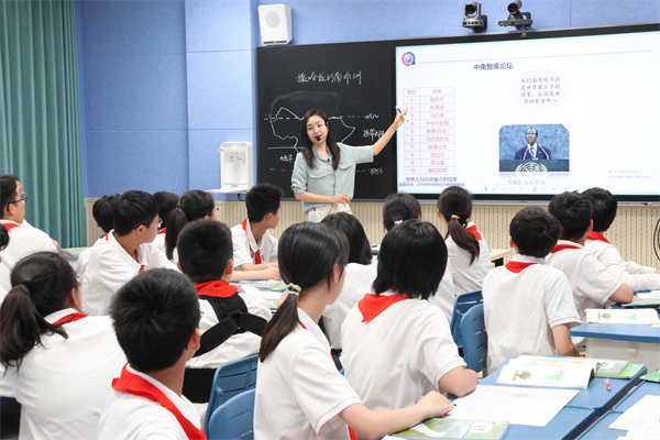 會(huì)場(chǎng)一首先由南京市科利華鐵北中學(xué)的陳澄老師開啟,以中國(guó)援建非洲為情境展開《撒哈拉以南的非洲》這一課的教學(xué),通過蒙內(nèi)鐵路的建設(shè)等真實(shí)案例,整體設(shè)計(jì)立足于核心素養(yǎng)的真實(shí)問題?!盀楹涡枰ā薄叭绾沃腔墼ā薄霸ㄓ泻我饬x”,多元化的問題鏈設(shè)計(jì)充分調(diào)動(dòng)了學(xué)生的積極性,讓高階思維在交流中不斷深化。