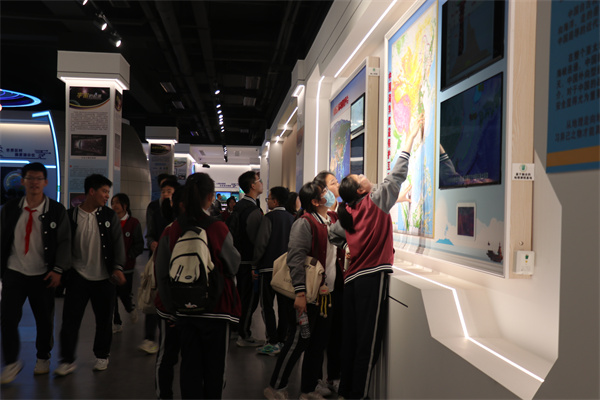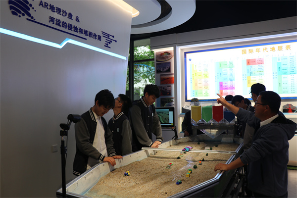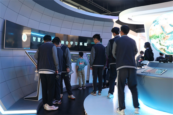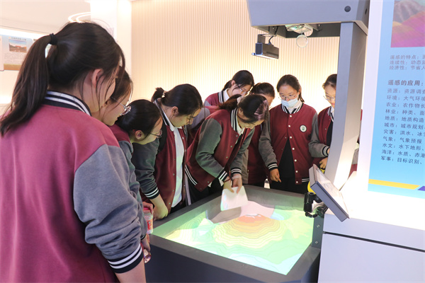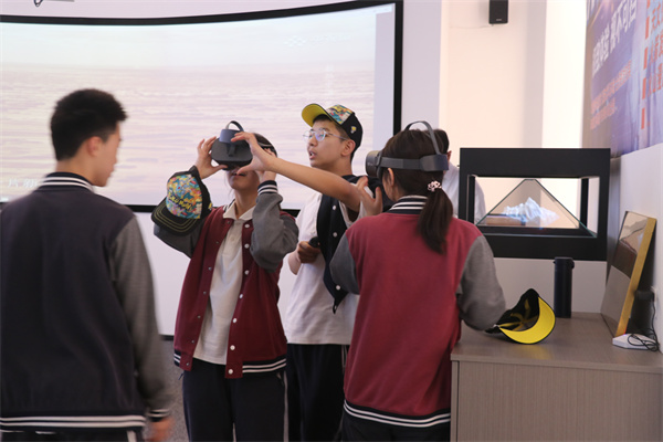 石油文化園中的磕頭機(jī),智慧融合地理體驗(yàn)館中的天和核心艙,VR技術(shù),AR地形數(shù)字沙盤,5D影片……在老師們生動(dòng)形象的講解和同學(xué)們的親身體驗(yàn)下,同學(xué)們對(duì)現(xiàn)代科技贊嘆不已、興趣盎然。